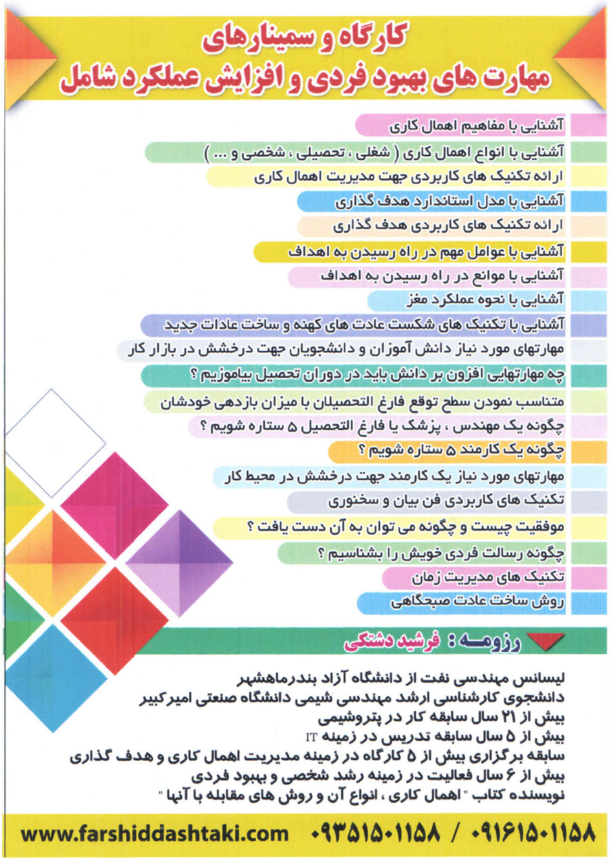 تراکت مجموعه کارگاهها و کلاسهای قابل برگزاری